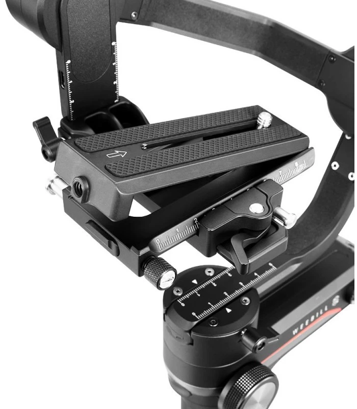El WEEBILL-S de Zhiyun-Tech incorpora el diseño de modo inferior de su predecesor, el WEEBILL LAB, y también tiene una forma más compacta y otras características nuevas. El diseño del modo de eslinga consiste en una manija en la parte trasera que permite cambiar fácilmente al modo suspendido, así como un mejor manejo en todos los demás modos. Otras mejoras incluyen motores actualizados y algoritmo de estabilización. WEEBILL-S presenta un 300% más de par motor y un 50% más de capacidad de respuesta. Esto le permite equilibrar mejor las combinaciones de cámara / lente, como la Canon 5D Mark IV con una lente de zoom de 24-70 mm.